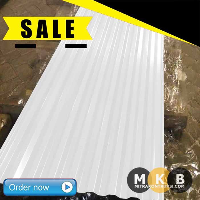 | Spandek Warna Putih tebal 0.45 mm | 750 mm | IDR 94.000/meter |